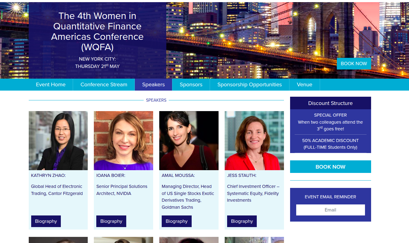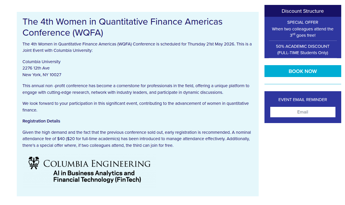 Quant Insider Fintech Partner for "The 4th Women in Quantitative Finance Americas Conference (WQFA)" Visit Now