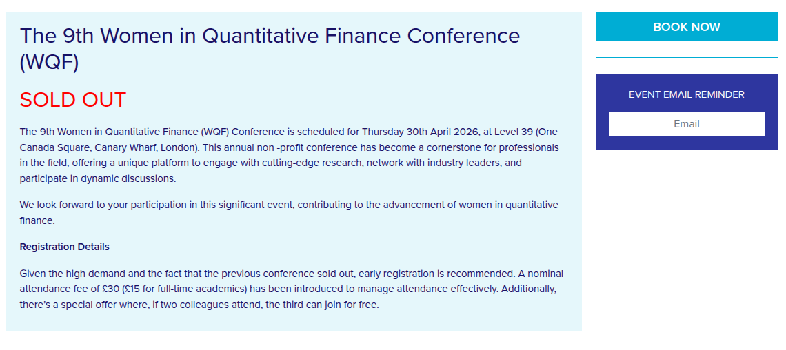 Quant Insider Fintech Partner for "The 9th Women in Quantitative Finance Conference (WQF)" Visit Now